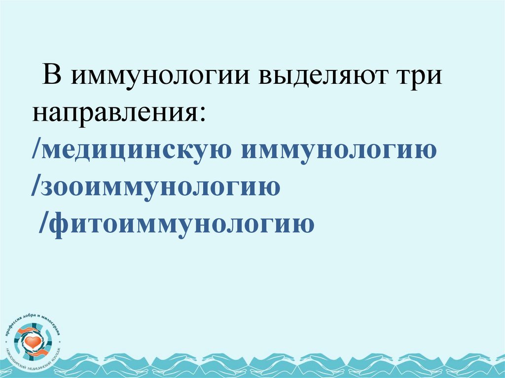В иммунологии выделяют тринаправления: