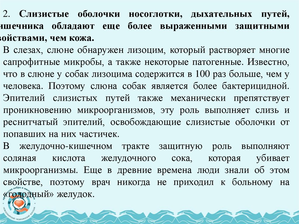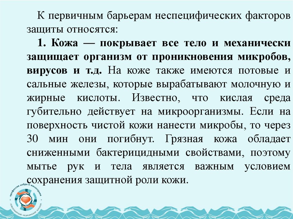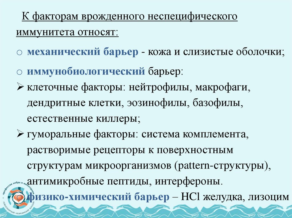 Неспецифические факторы защиты: