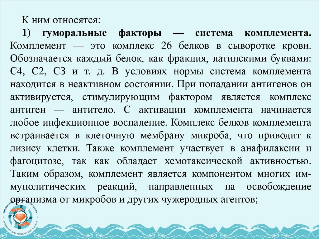 факторы гуморального иммунитета.