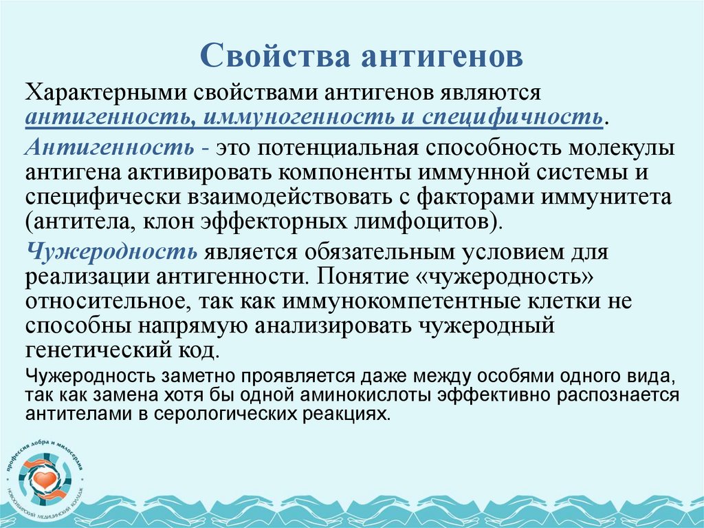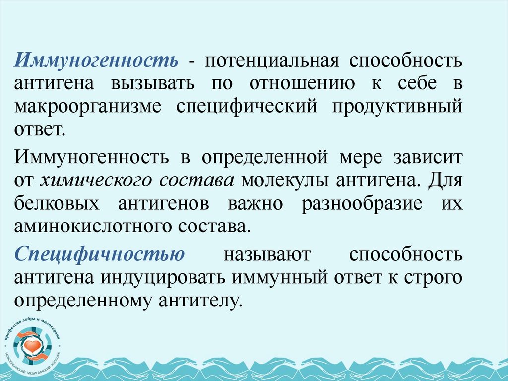 Специфичность - это способность вступать во взаимодействие сантигеном, аналогичным тому, который вызвал их образование.