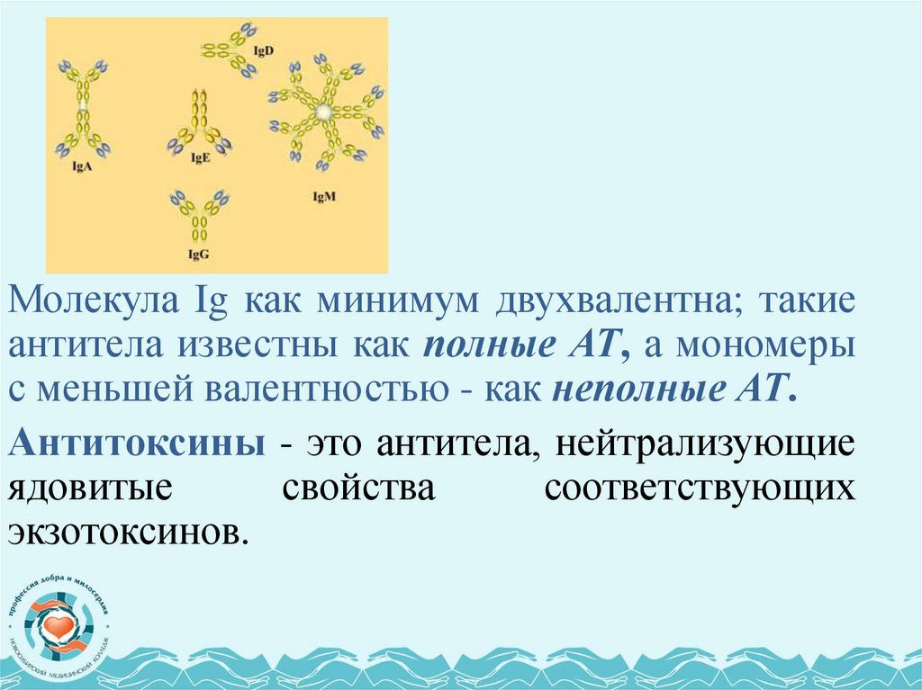 Молекула Ig как минимум двухвалентна; такиеантитела известны как полные АТ, а мономеры