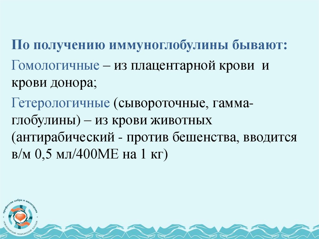 По получению иммуноглобулины бывают:Гомологичные – из плацентарной крови и