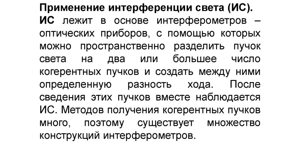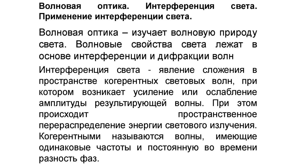 Интерференция света - явление наложения когерентныхсветовых волн, дающее устойчивую картину минимумов и