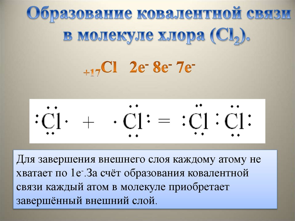 Для завершения внешнего слоя каждому атому нехватает по 1е-.За счёт образования ковалентной