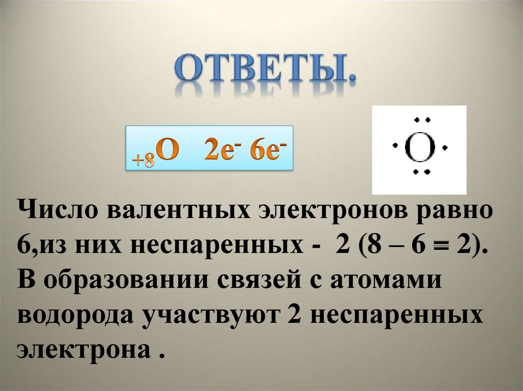 Число валентных электронов равно6,из них неспаренных - 2 (8 – 6 = 2).