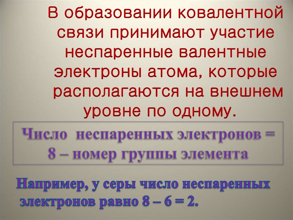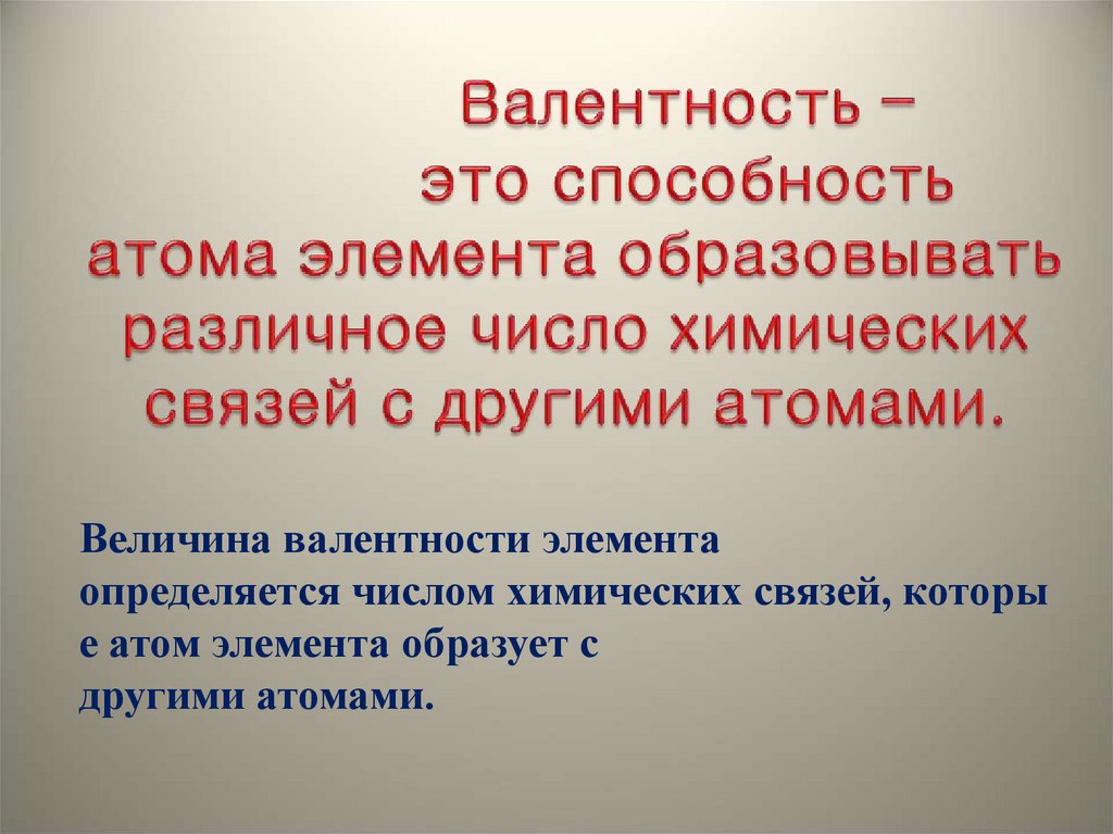 Величина валентности элементаопределяется числом химических связей, которы