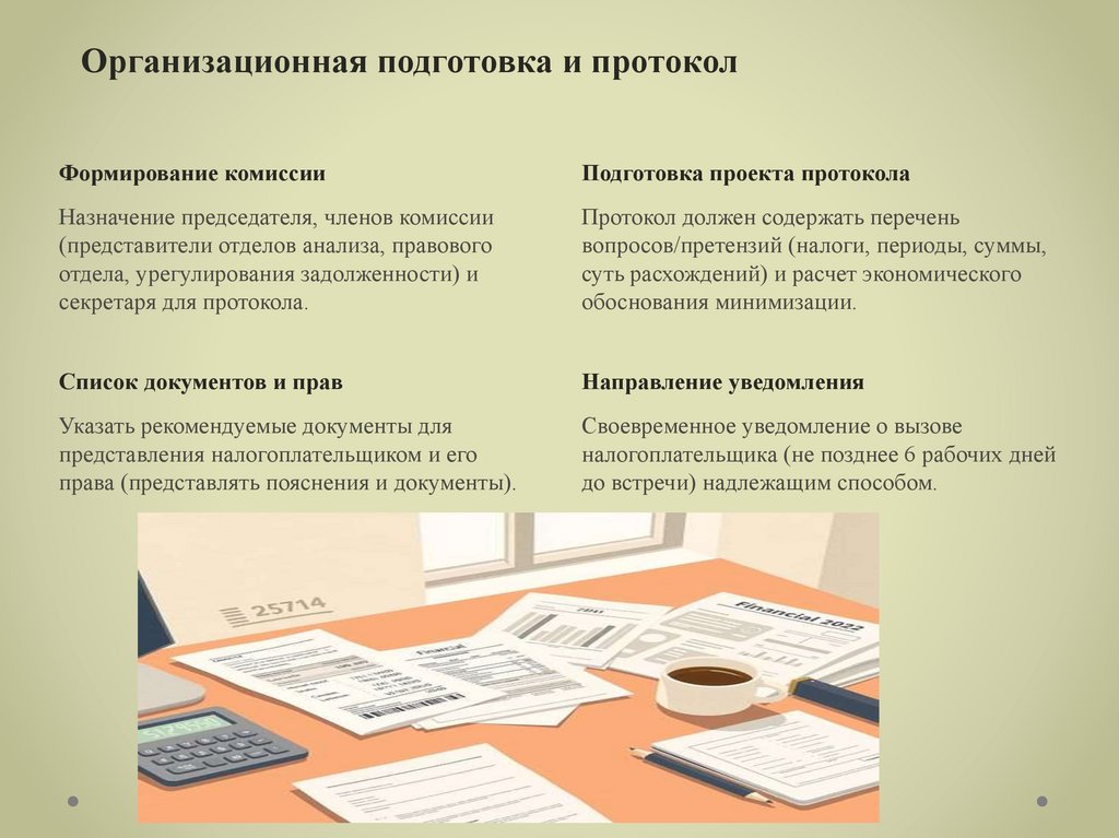 детализирующие порядок проведения мероприятий налогового контроля и рабочих встреч.