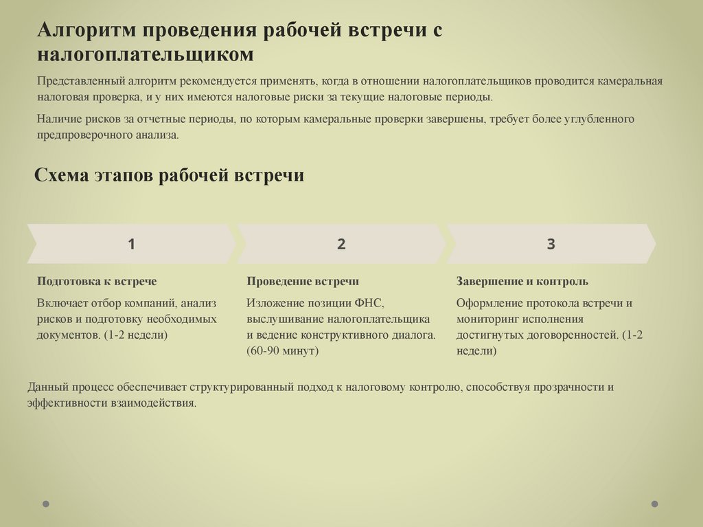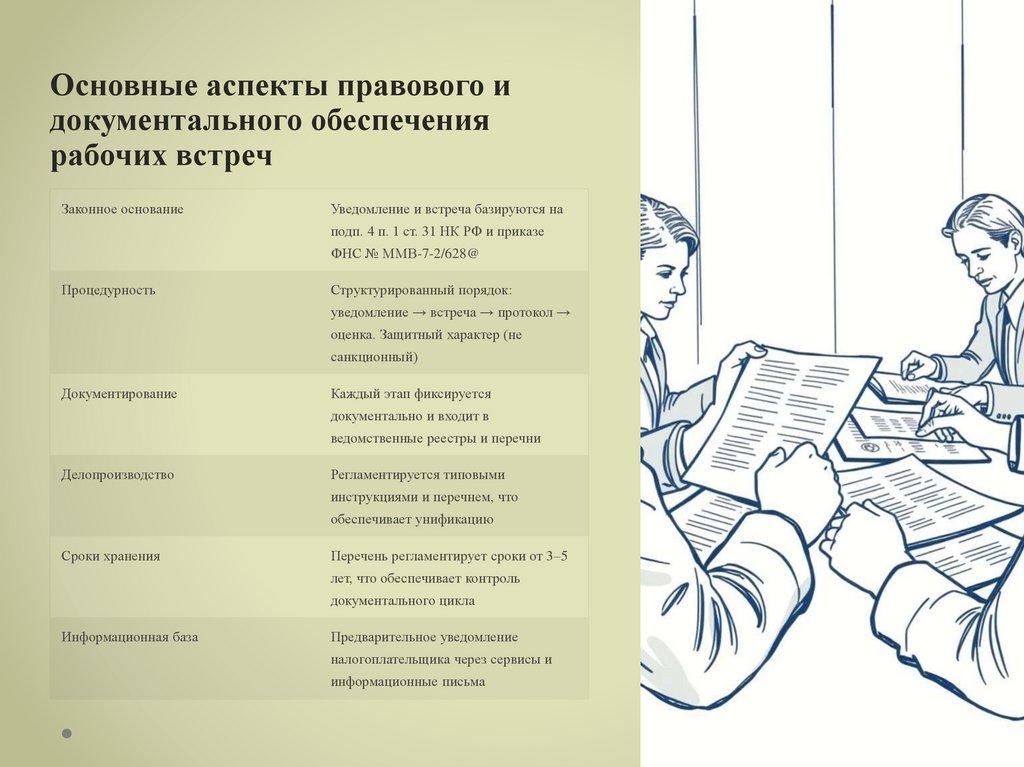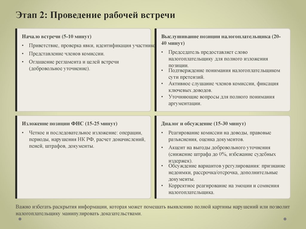 налоговых проверок, в рамках которых часто инициируются рабочие встречи.
