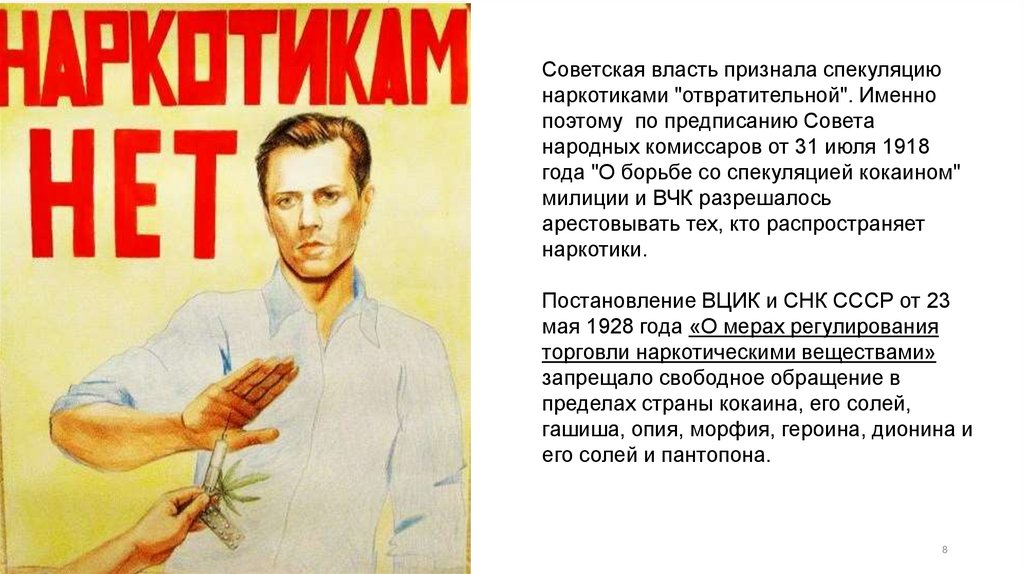 Советская власть признала спекуляциюнаркотиками "отвратительной". Именно