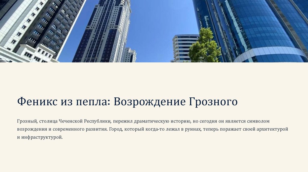 Феникс из пепла: Возрождение ГрозногоГрозный, столица Чеченской Республики, пережил драматическую историю, но сегодня он является символом