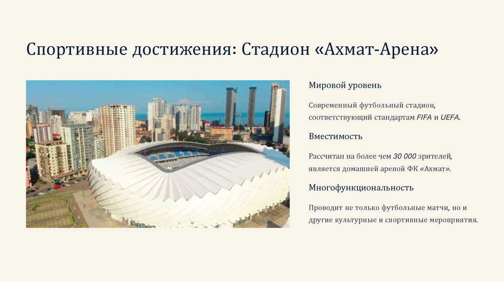 Спортивные достижения: Стадион «Ахмат-Арена»Мировой уровень