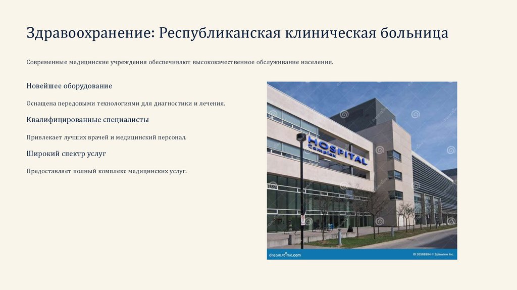 Здравоохранение: Республиканская клиническая больницаСовременные медицинские учреждения обеспечивают высококачественное обслуживание населения.