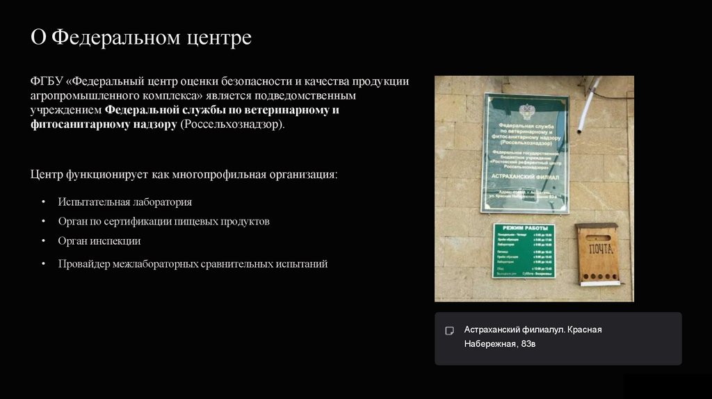 О Федеральном центреФГБУ «Федеральный центр оценки безопасности и качества продукции