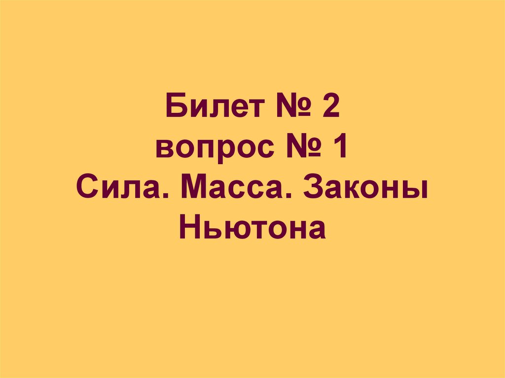 1. Билет № 2 вопрос № 1 Сила. Масса. Законы Ньютона