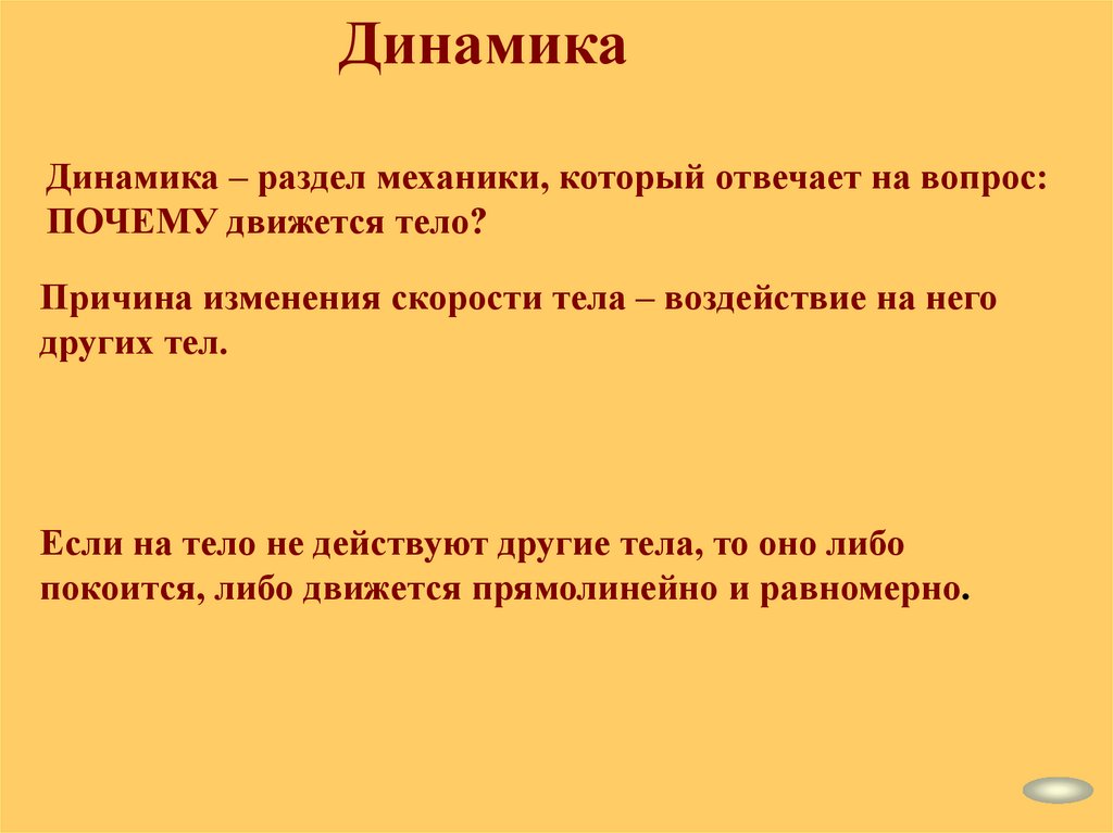 ДинамикаДинамика – раздел механики, который отвечает на вопрос: