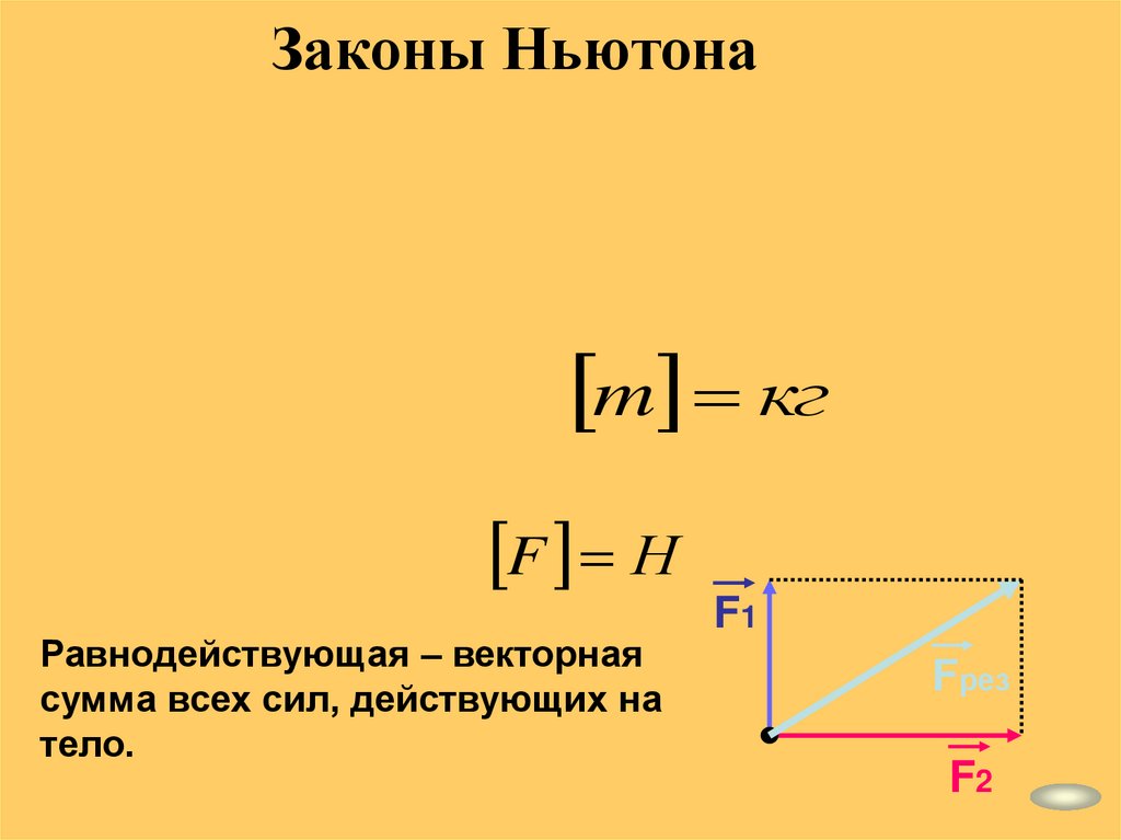 10. Во втором законе Ньютона F – равнодействующая всех сил