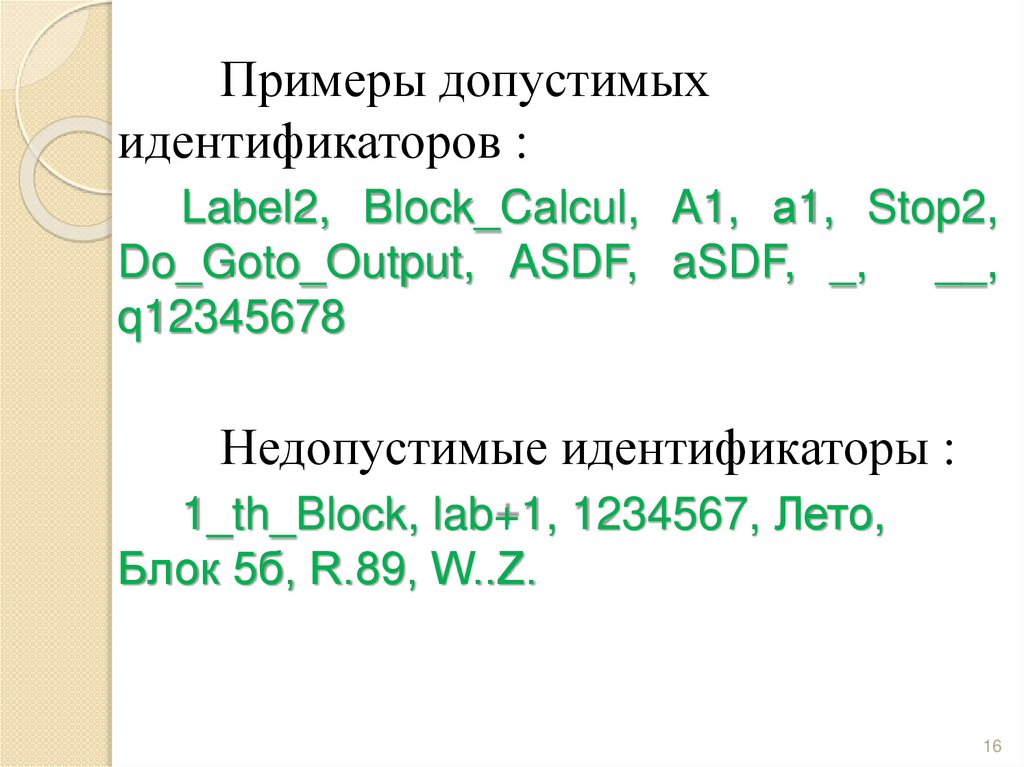 • алфавит – совокупность допустимых вязыке символов или групп символов,