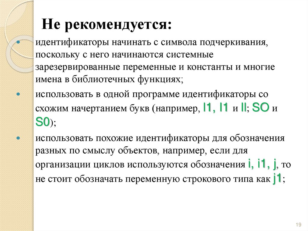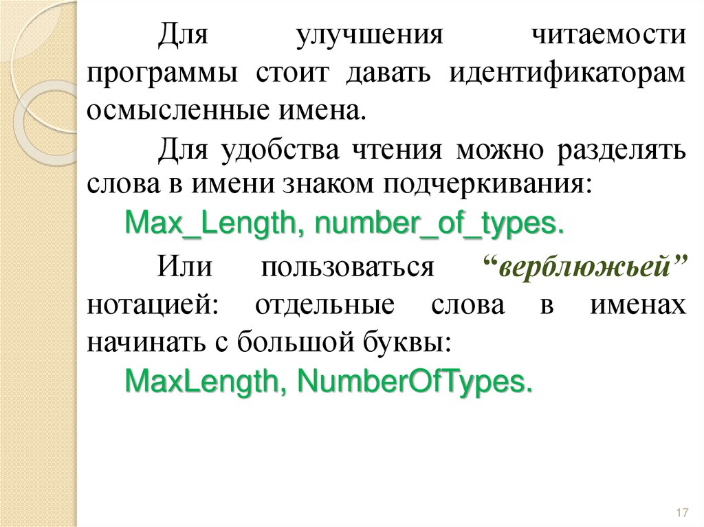 7. · символ подчеркивания _ · специальные символы: . , : ; ‘ “ # · скобки { } [ ] ( ) · знаки < > & | ^ ! + - / * % =