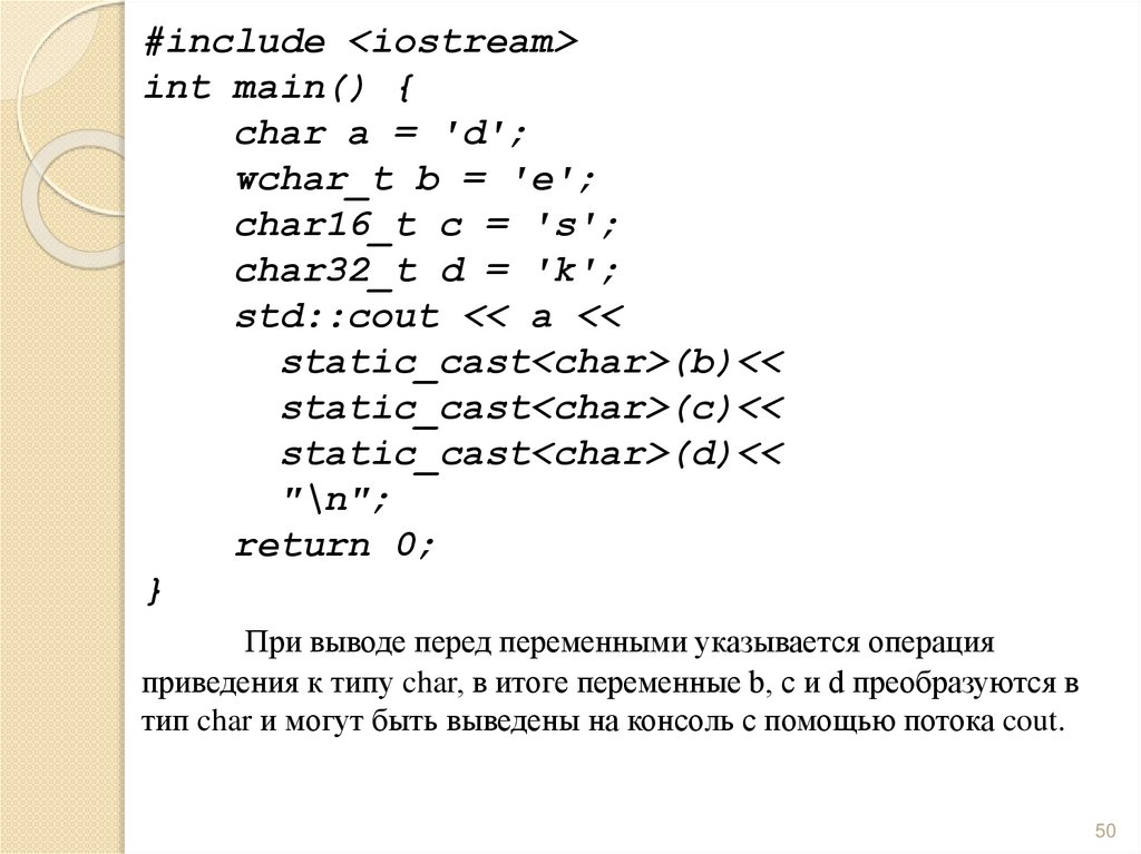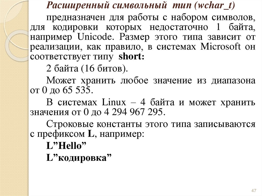 9. · кроме того, каждый символ может быть обозначен своим кодом в 8-ой или 16-ой системе счисления: \ddd – где буквы ddd