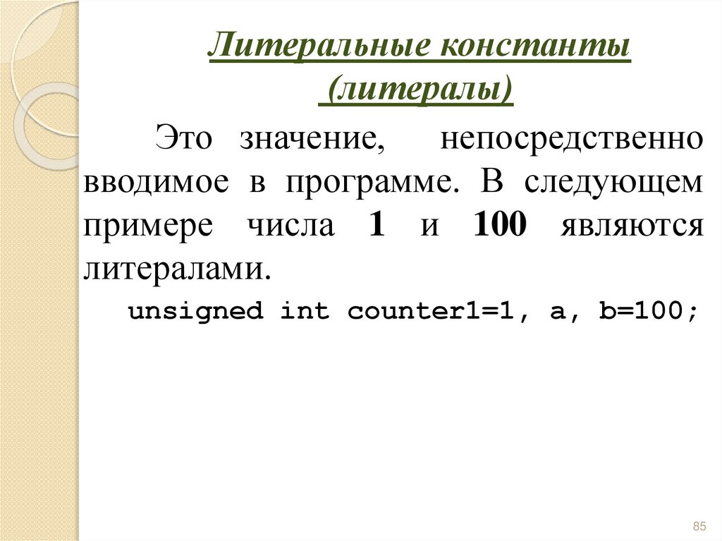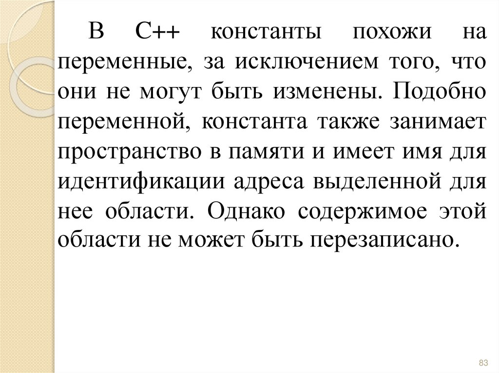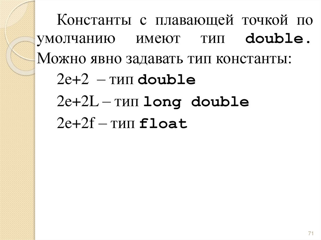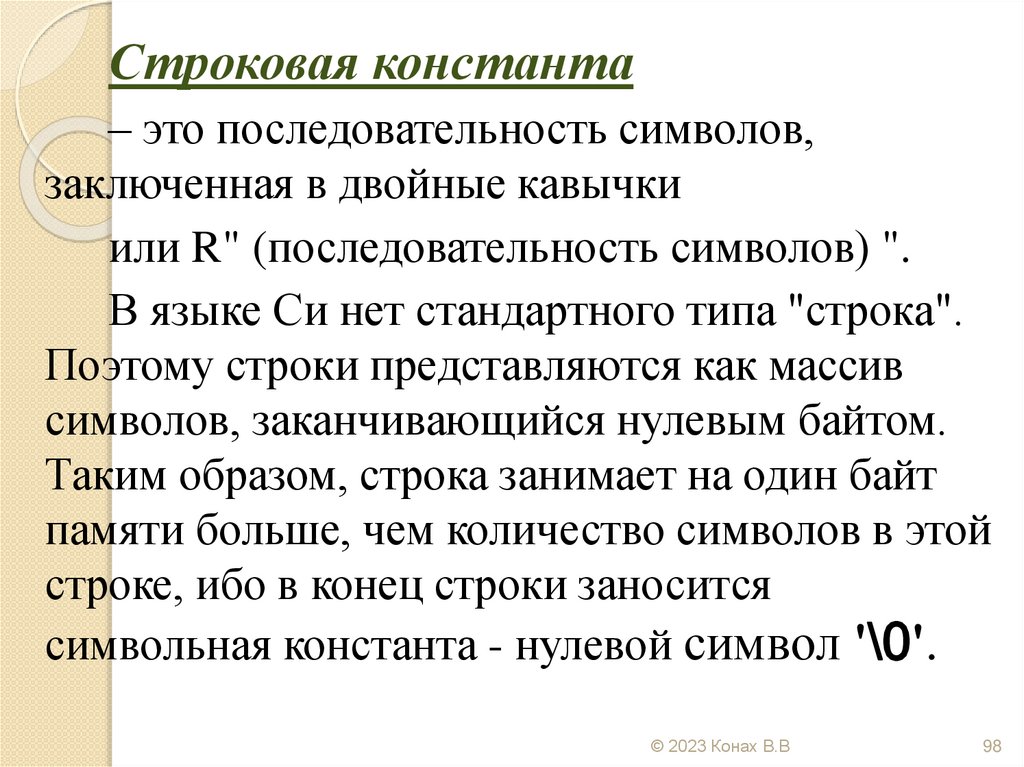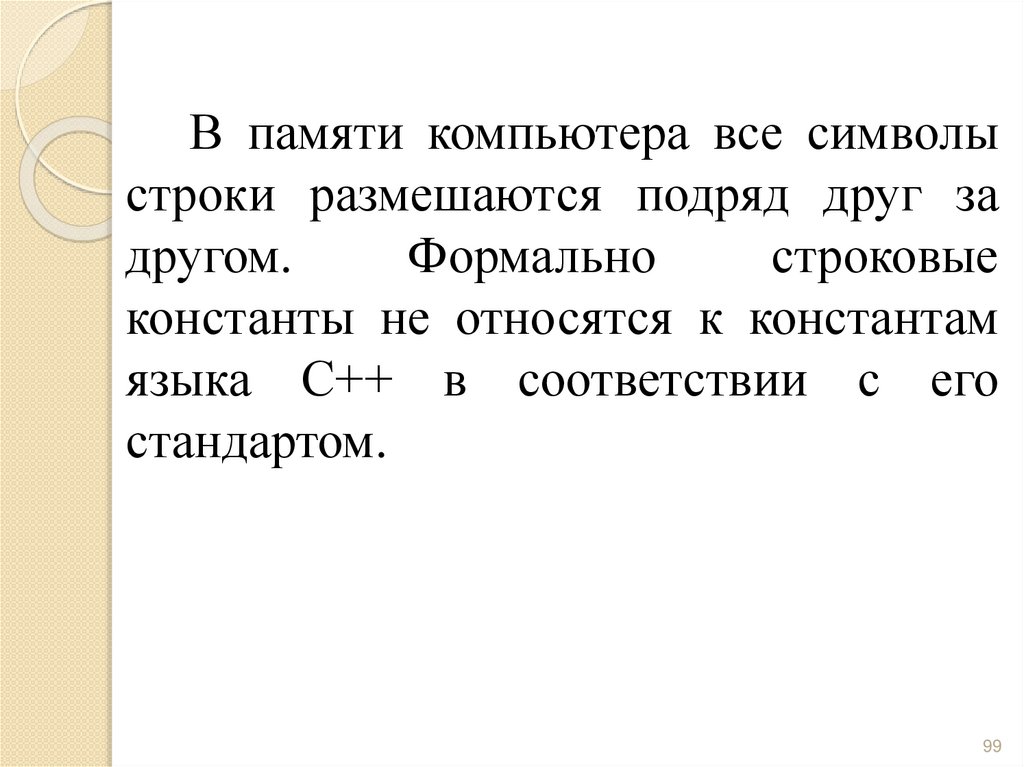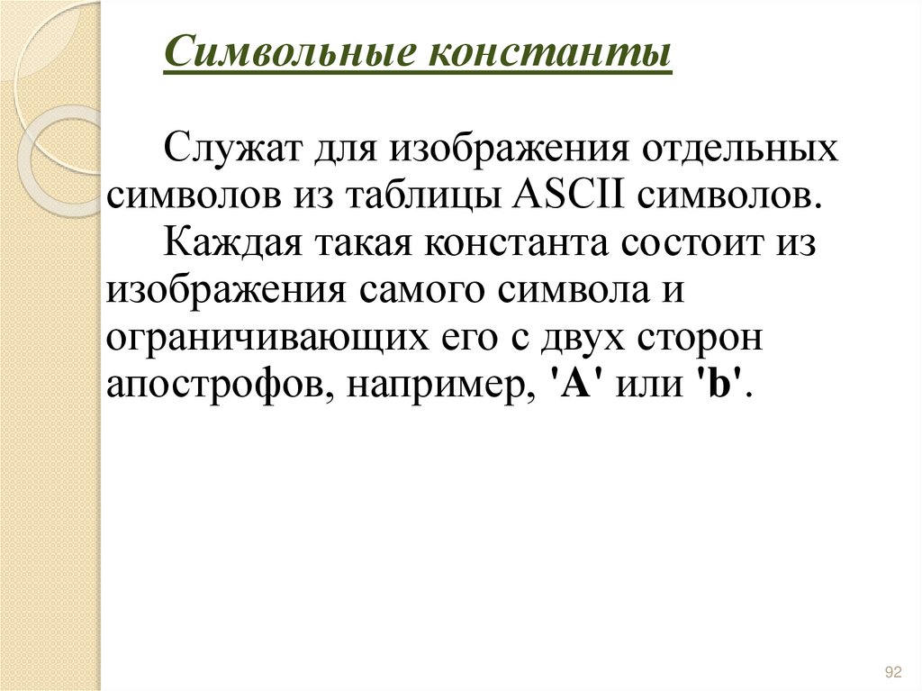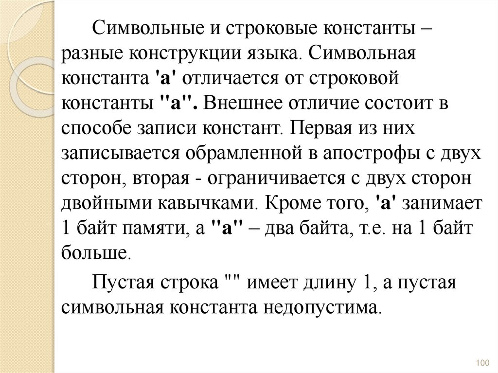 Символьные и строковые константы –разные конструкции языка. Символьная