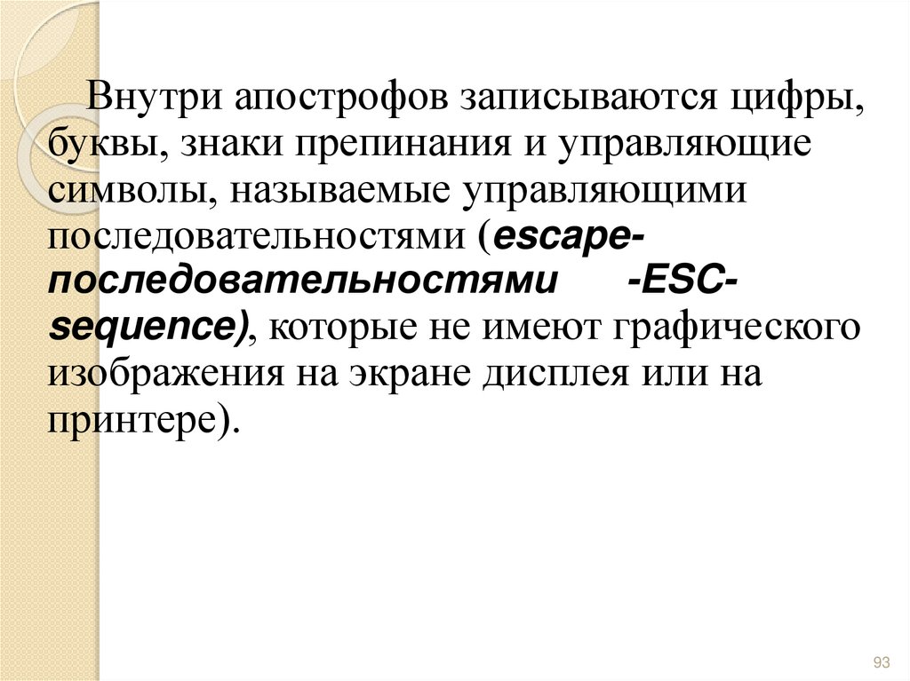 10. · Дополнительно в языке используются управляющие символы, или escape-последовательности – это такие символы, при вставке
