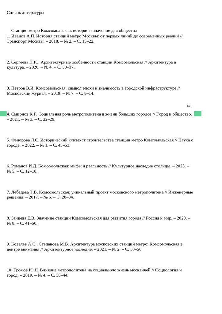 Список литературыСтанция метро Комсомольская: история и значение для общества