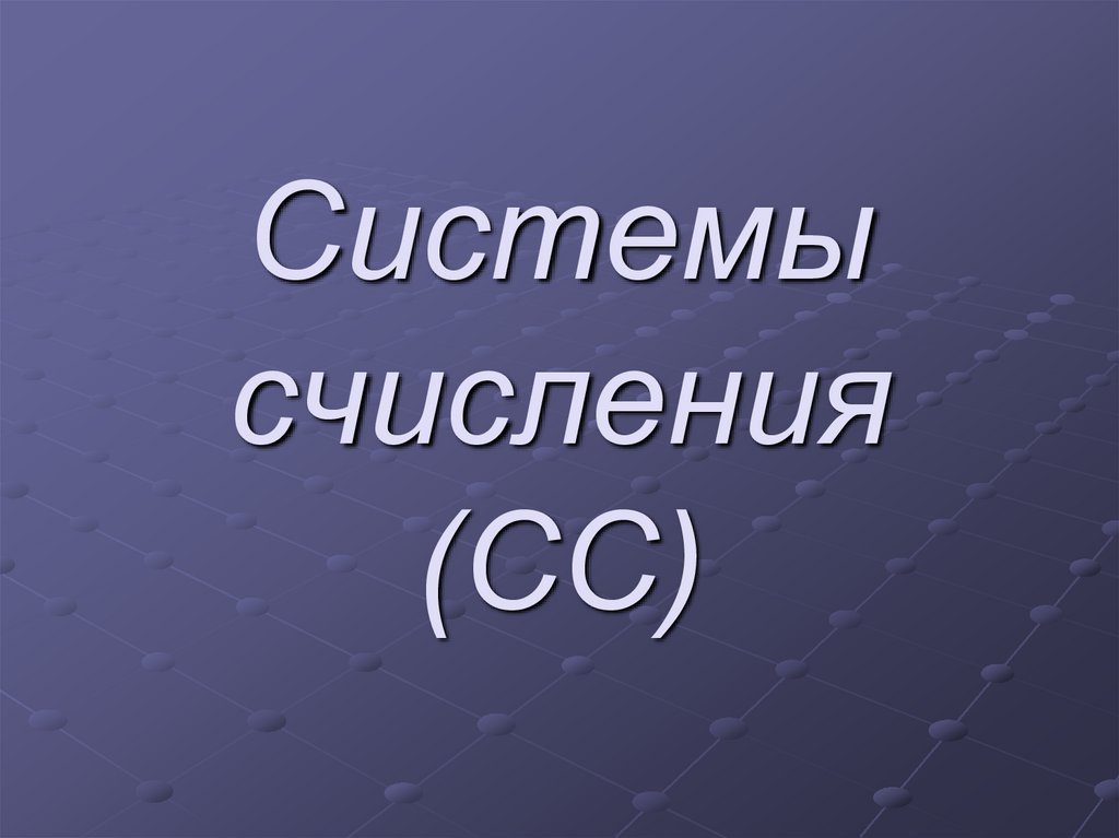 1. Системы счисления (СС)