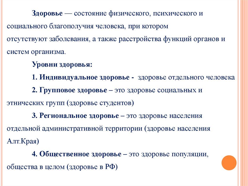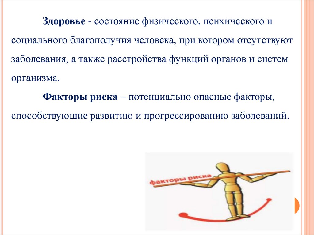 Здоровье - состояние физического, психического исоциального благополучия человека, при котором отсутствуют