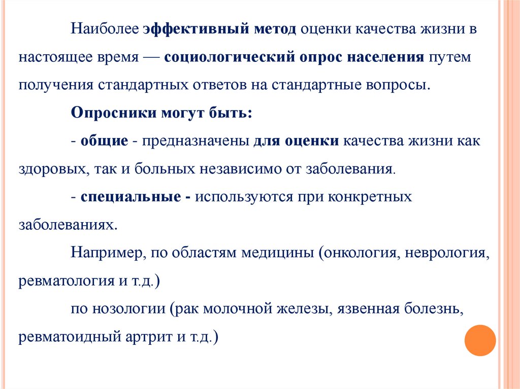 Наиболее эффективный метод оценки качества жизни внастоящее время — социологический опрос населения путем