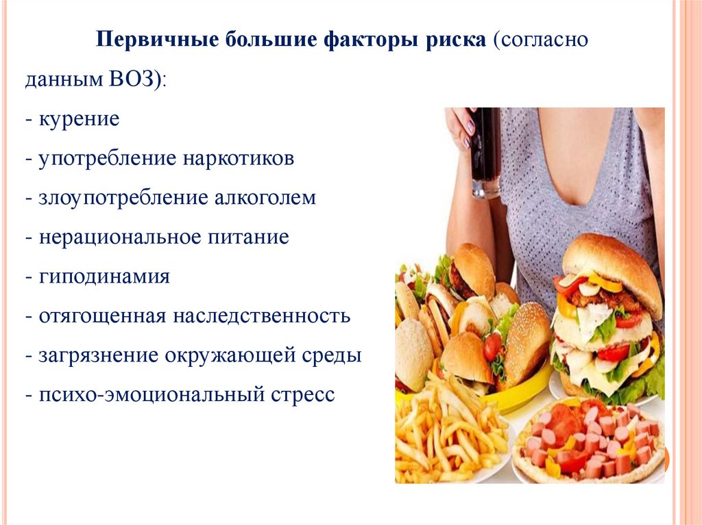 Первичные большие факторы риска (согласноданным ВОЗ):