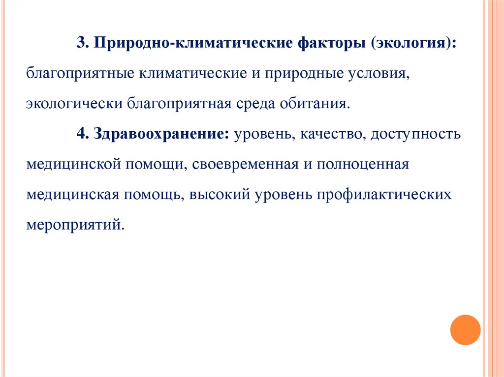 3. Природно-климатические факторы (экология):благоприятные климатические и природные условия,