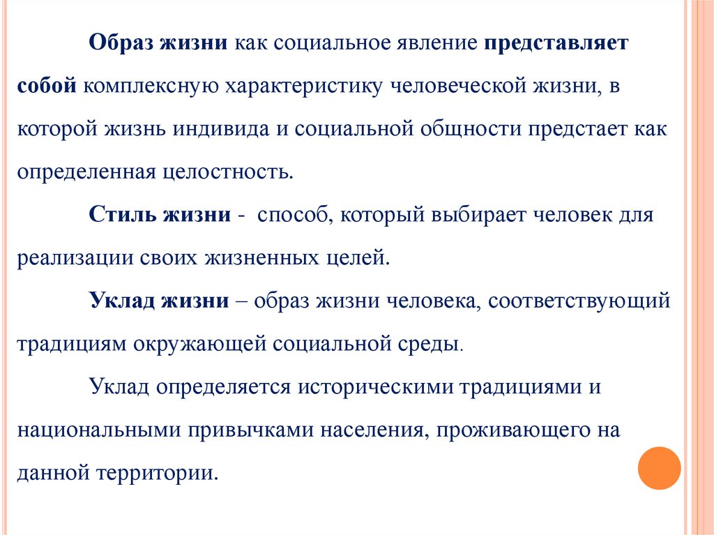 Образ жизни как социальное явление представляетсобой комплексную характеристику человеческой жизни, в