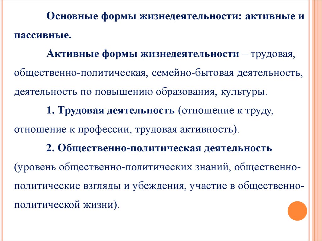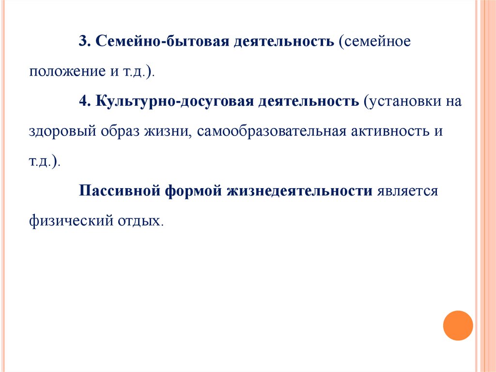 3. Семейно-бытовая деятельность (семейноеположение и т.д.).
