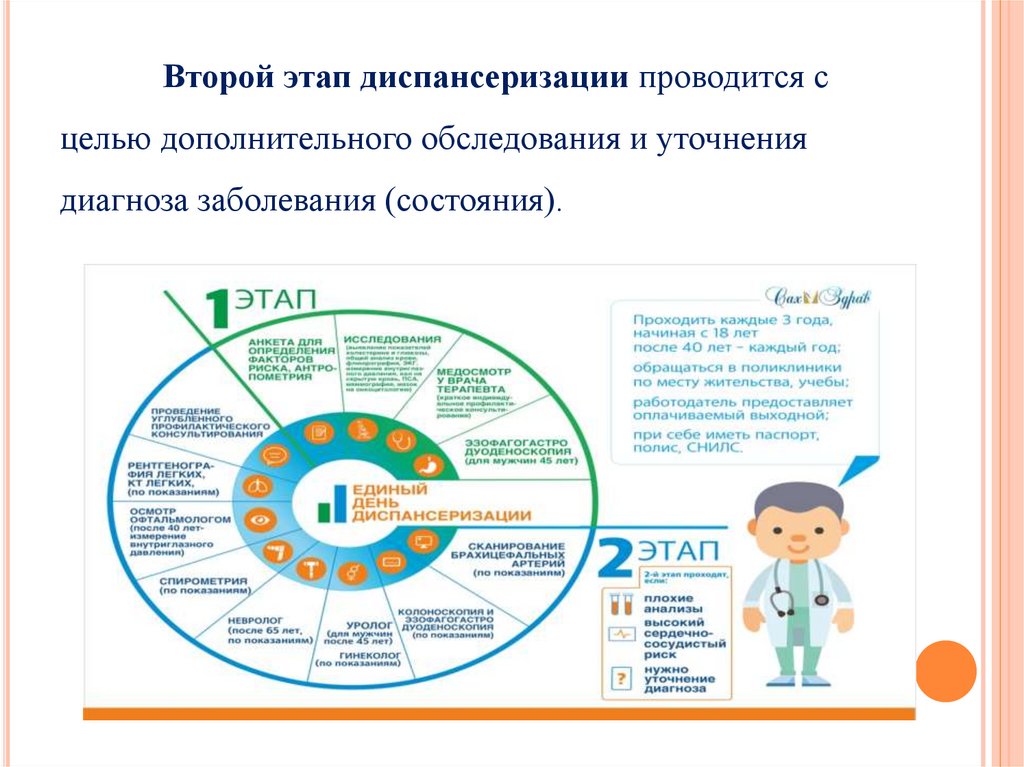Второй этап диспансеризациипроводится в целях дополнительного обследования и уточнения