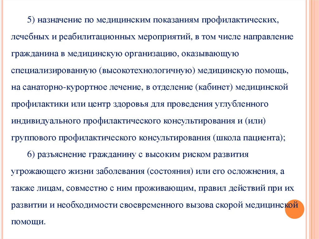 5) назначение по медицинским показаниям профилактических,лечебных и реабилитационных мероприятий, в том числе направление
