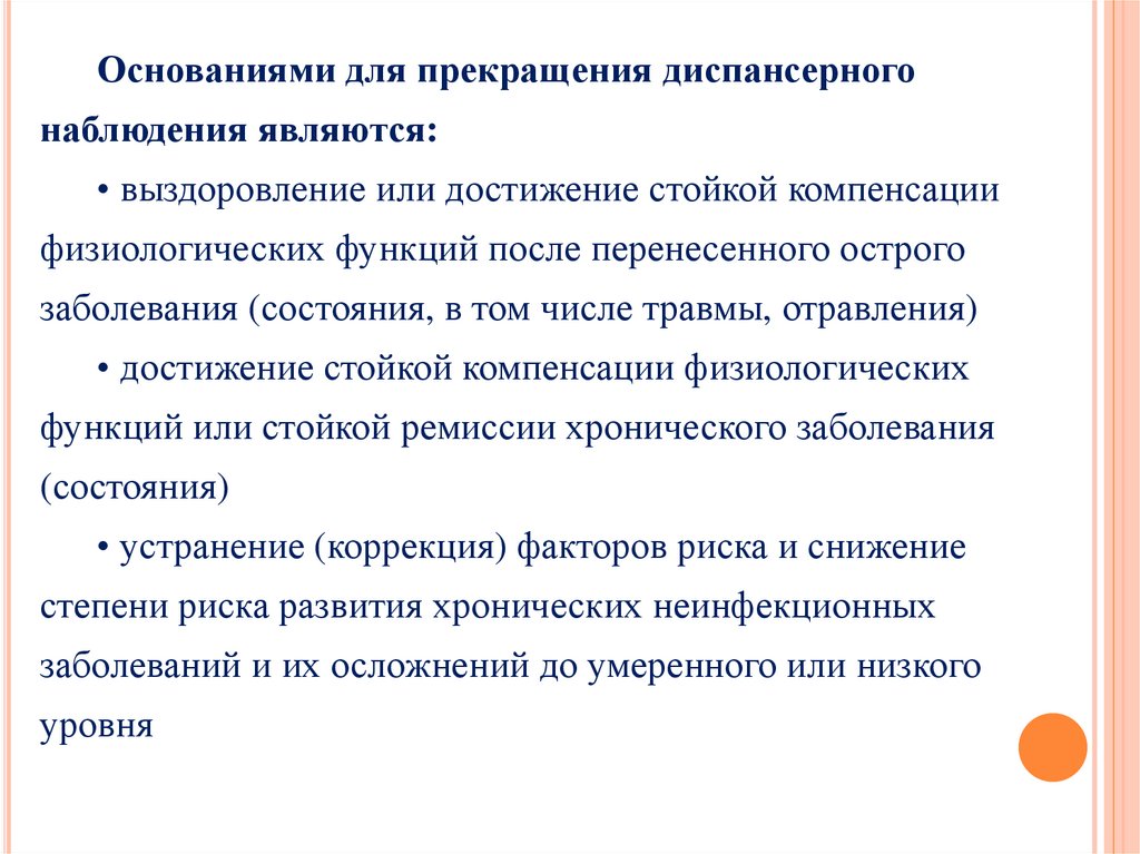 Основаниями для прекращения диспансерногонаблюдения являются: