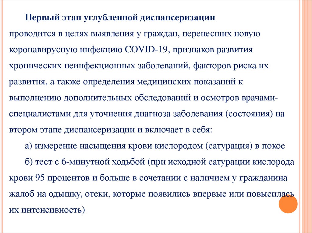 Первый этап углубленной диспансеризациипроводится в целях выявления у граждан, перенесших новую