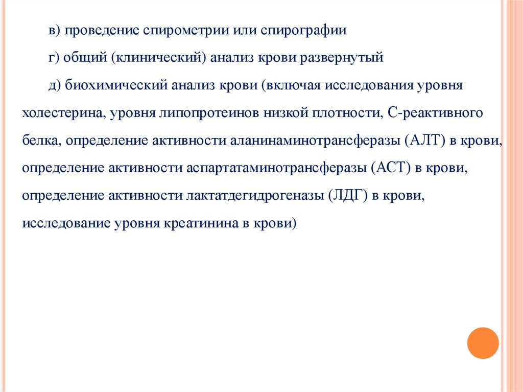в) проведение спирометрии или спирографииг) общий (клинический) анализ крови развернутый