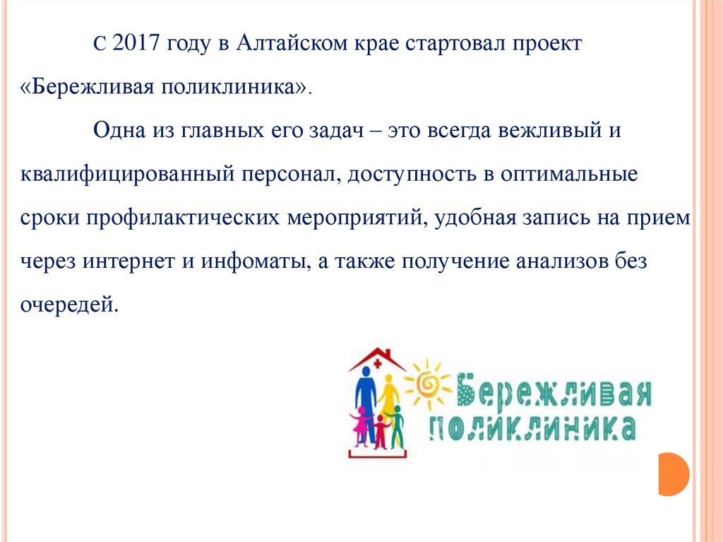 С 2017 году в Алтайском крае стартовал проект«Бережливая поликлиника».