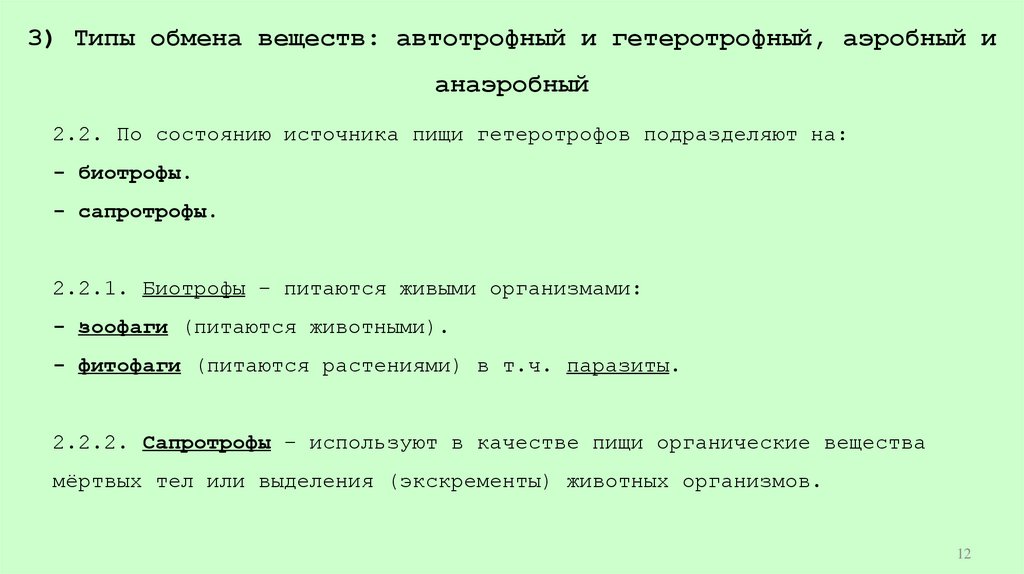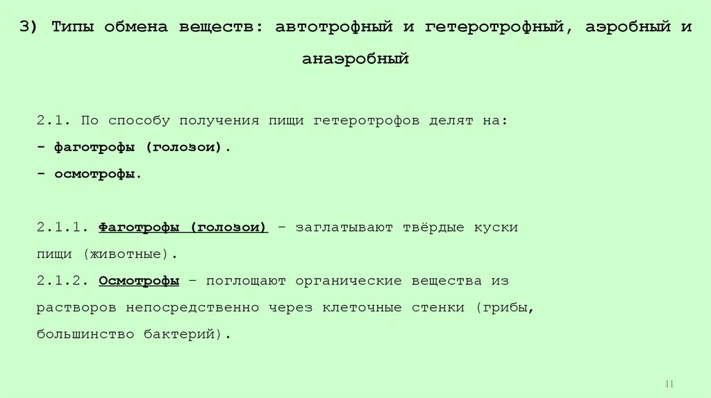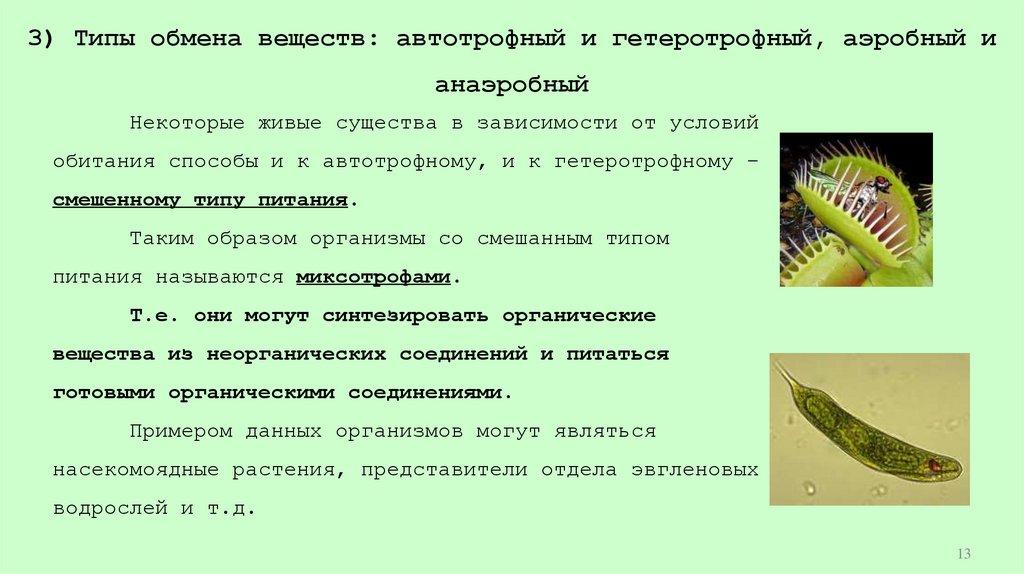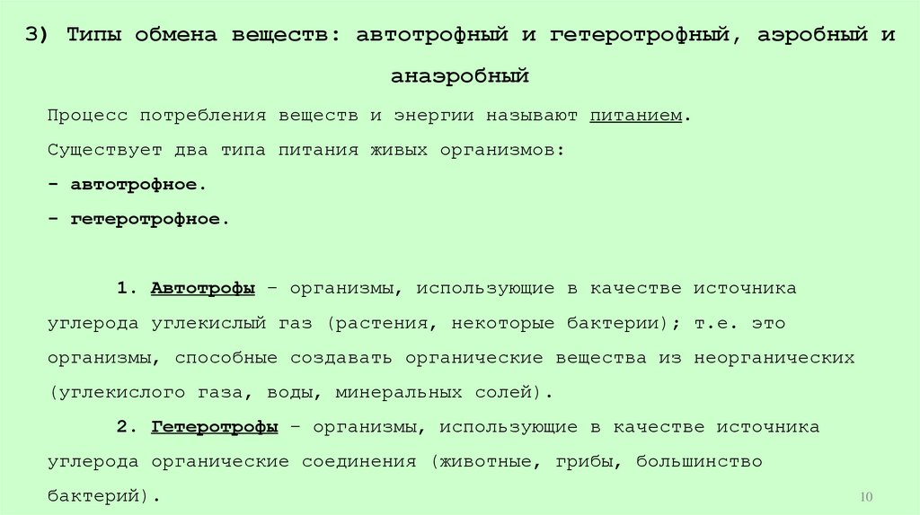 3. Типы обмена веществ: автотрофный и гетеротрофный,