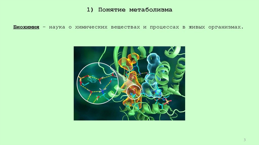 1) Понятие метаболизмаБиохимия – наука о химических веществах и процессах в живых организмах.