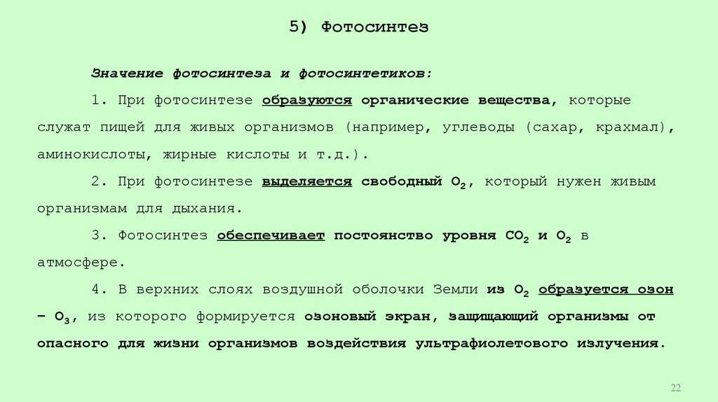 5) ФотосинтезЗначение фотосинтеза и фотосинтетиков: