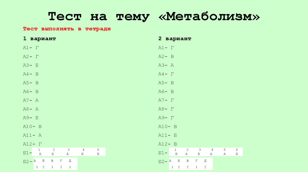 Тест на тему «Метаболизм»Тест выполнять в тетради