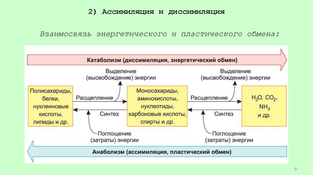 2) Ассимиляция и диссимиляцияВзаимосвязь энергетического и пластического обмена:
