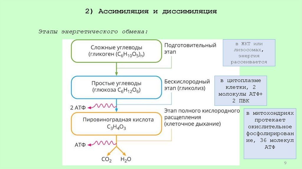 2) Ассимиляция и диссимиляцияЭтапы энергетического обмена: