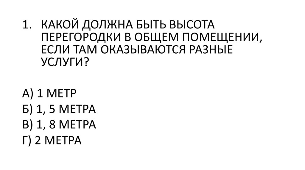 1. КАКОЙ ДОЛЖНА БЫТЬ ВЫСОТАПЕРЕГОРОДКИ В ОБЩЕМ ПОМЕЩЕНИИ,