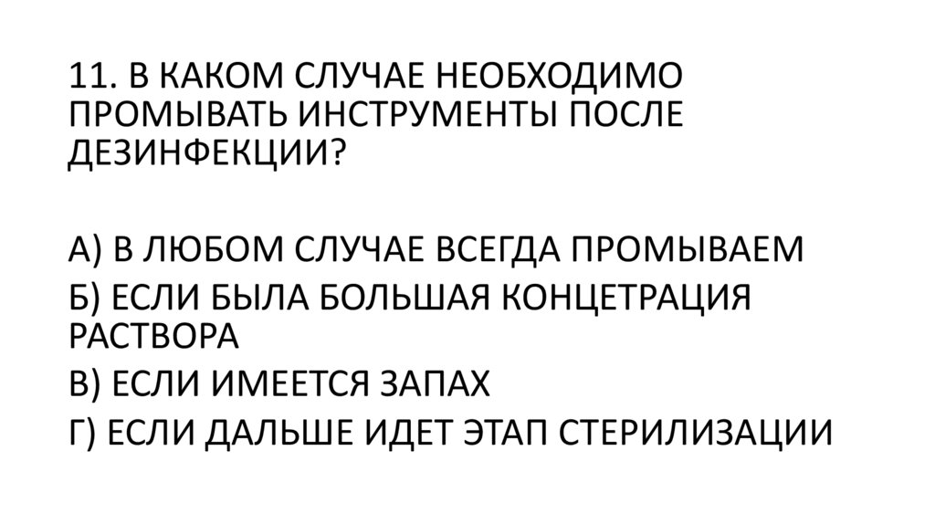 11. В КАКОМ СЛУЧАЕ НЕОБХОДИМОПРОМЫВАТЬ ИНСТРУМЕНТЫ ПОСЛЕ