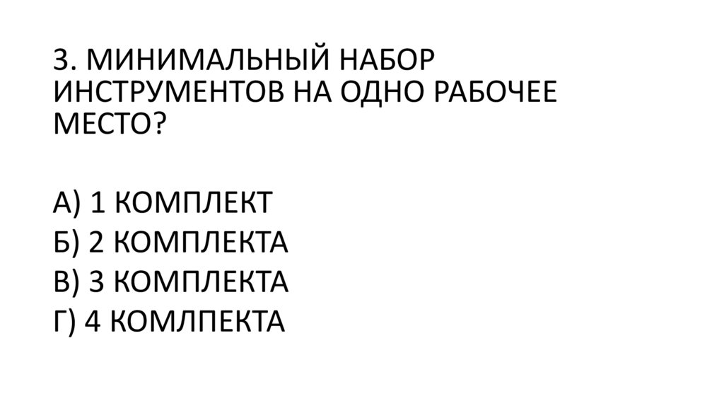 3. МИНИМАЛЬНЫЙ НАБОРИНСТРУМЕНТОВ НА ОДНО РАБОЧЕЕ