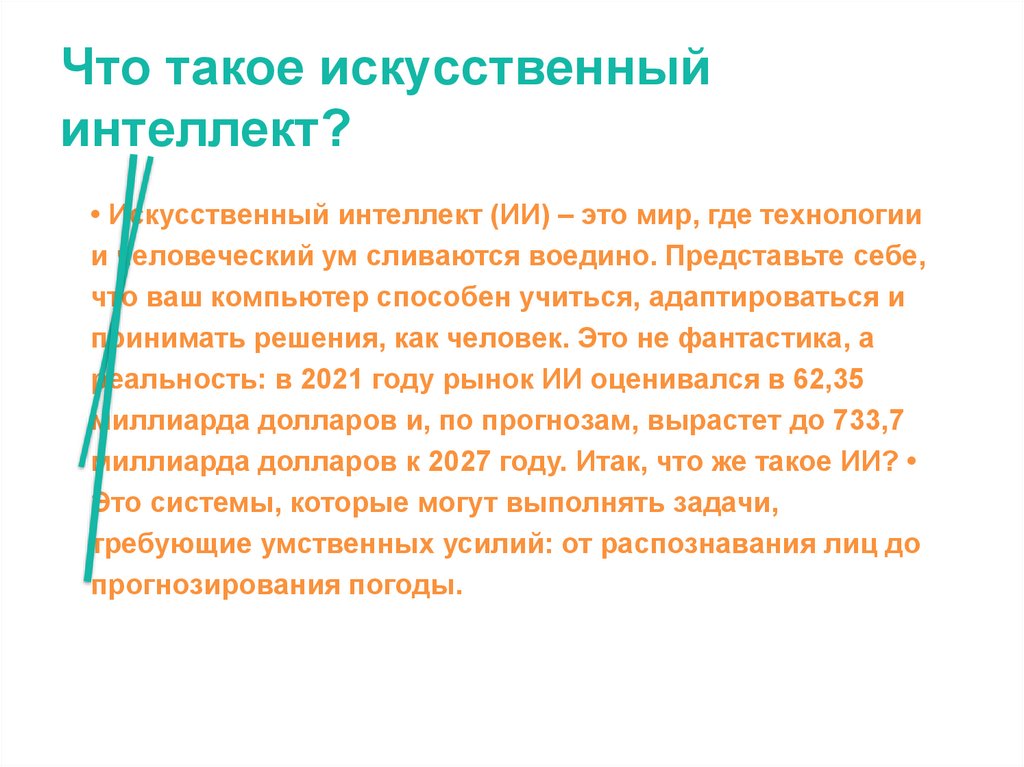 • Искусственный интеллект (ИИ) – это мир, где технологии