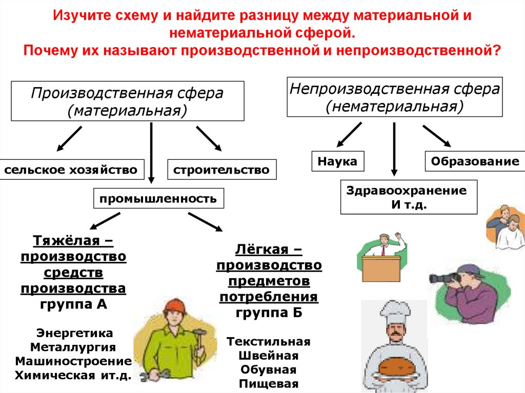 Изучите схему и найдите разницу между материальной инематериальной сферой.